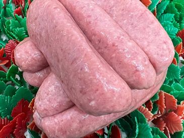 Beef sausages: Juicy, flavorful links for a hearty, savory indulgence.